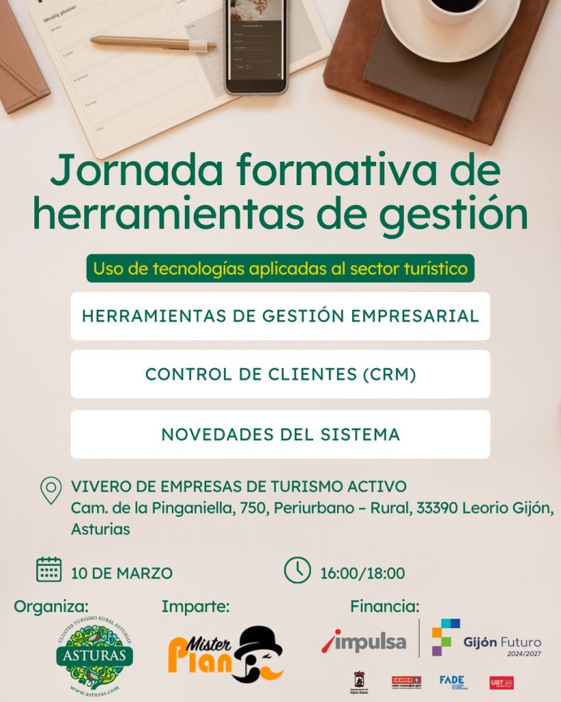 El próximo 10 de marzo, te invitamos a participar en una jornada práctica sobre herramientas de gestión empresarial aplicadas al sector turístico, donde abordaremos: